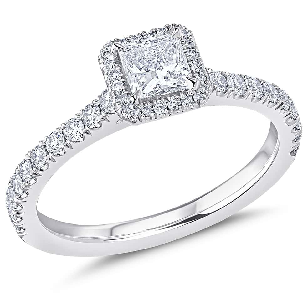 Princess Cut Oyster Deluxe 0.4ct Diamond Engagement Ring with Diamond Set Shoulders