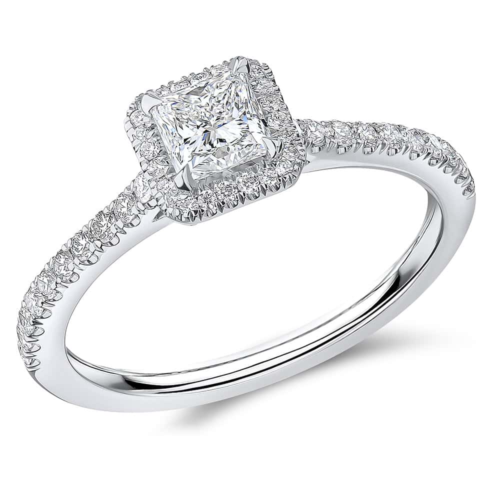 Princess Cut Oyster Deluxe 0.5ct Diamond Engagement Ring with Diamond Set Shoulders