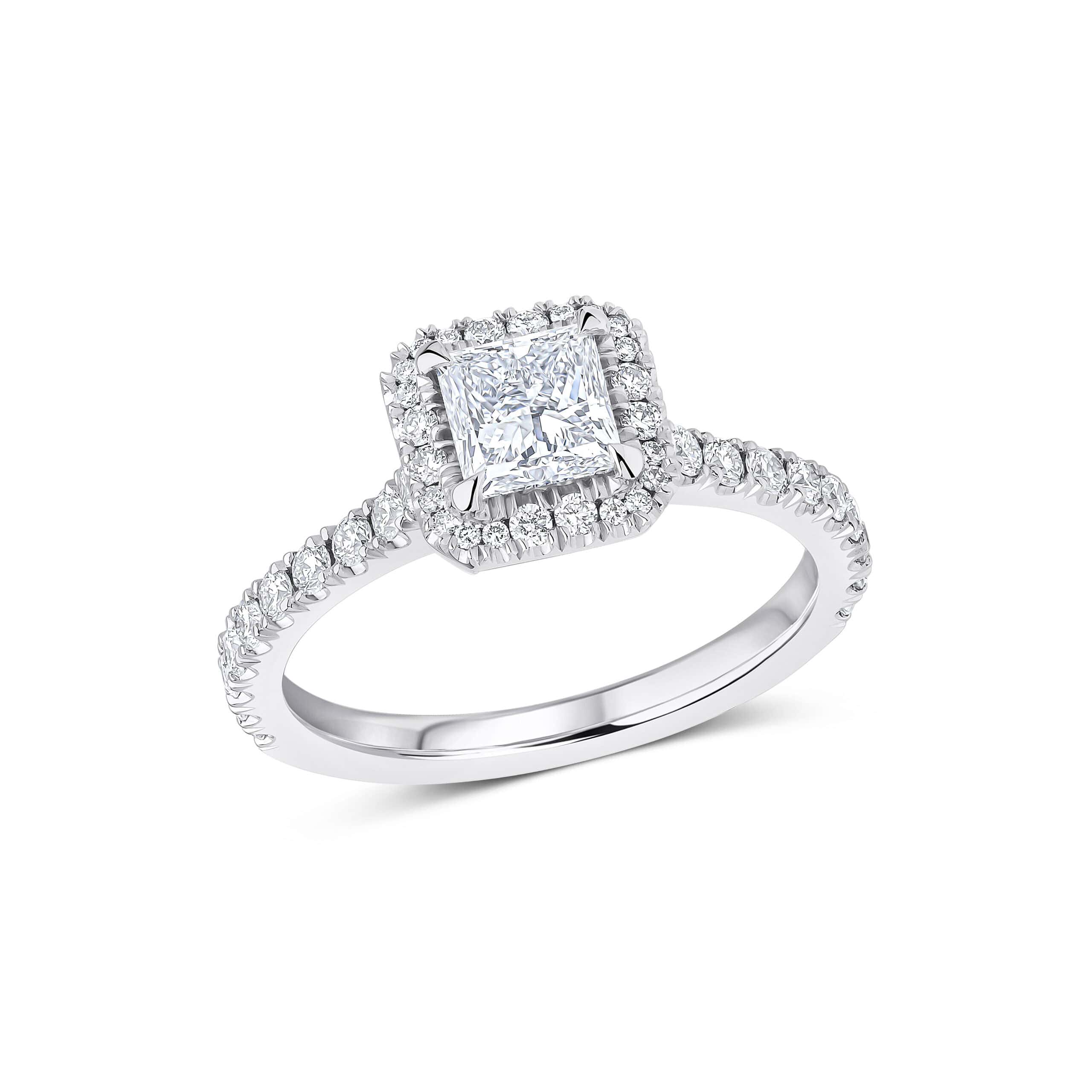 Princess Cut Oyster Deluxe 0.75ct Diamond Engagement Ring with Diamond Set Shoulders