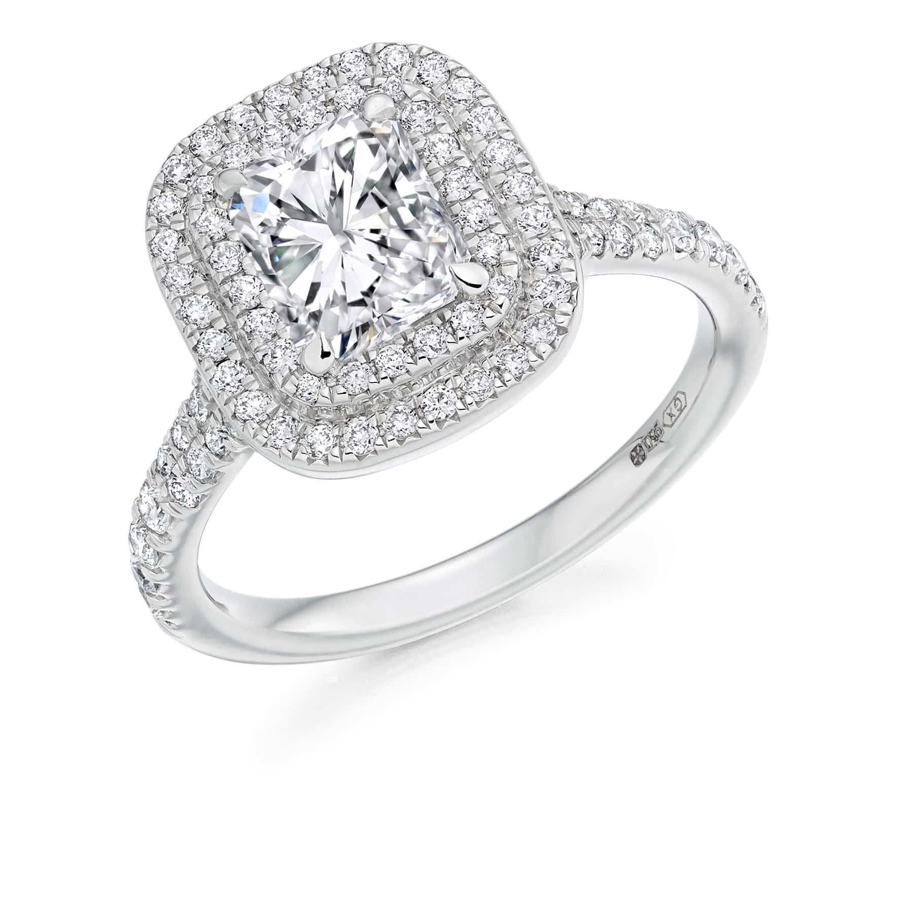 Radiant Cut Halo 1.35ct Diamond Engagement Ring with Diamond Set Shoulders