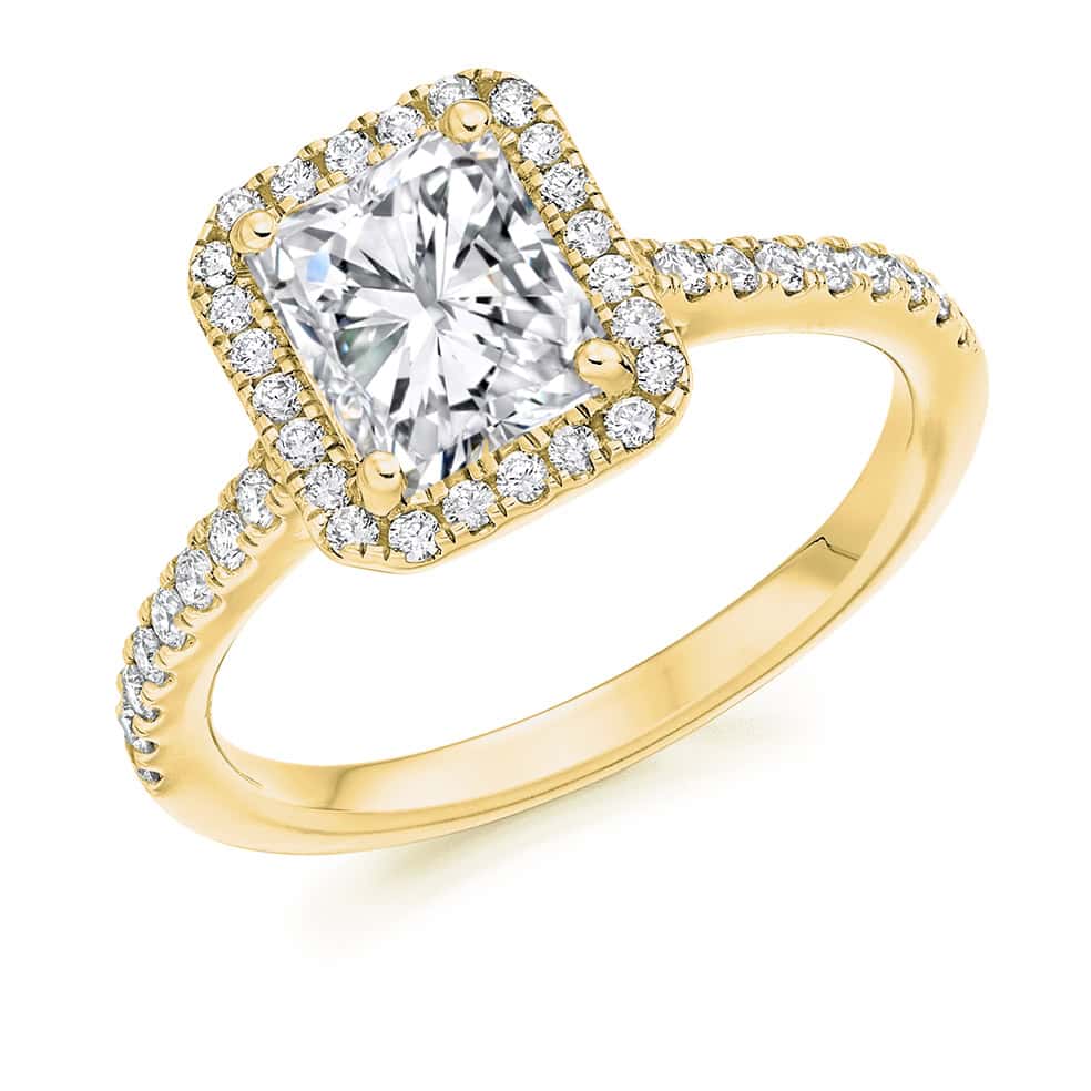 Radiant Cut Halo 1.5ct Diamond Engagement Ring with Diamond Set Shoulders