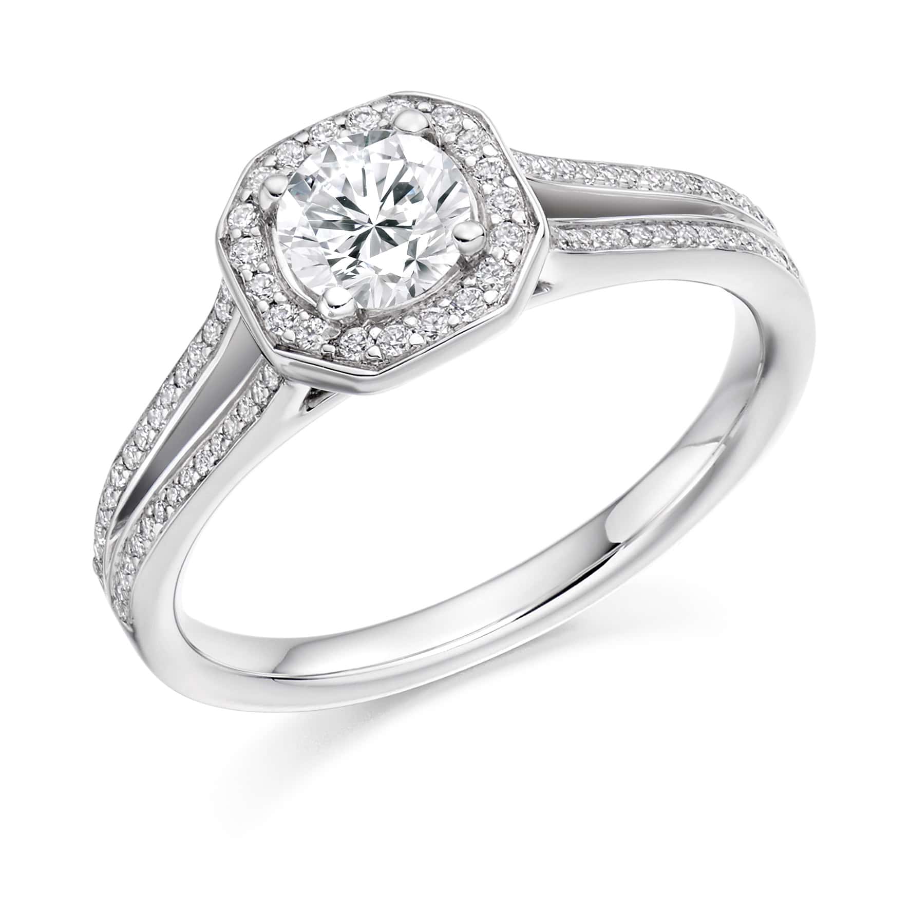 Round Brilliant Halo 0.33ct Diamond Engagement Ring with Diamond Set Shoulders