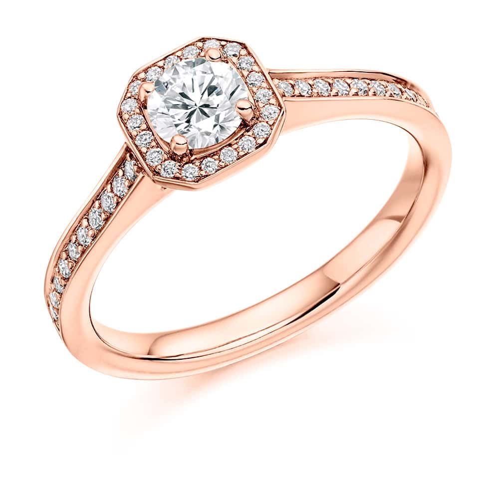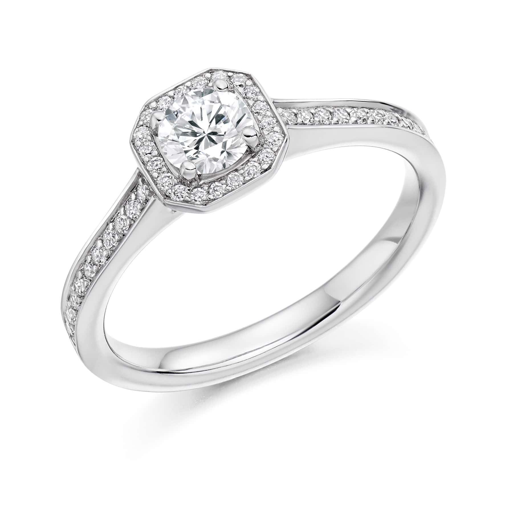 Round Brilliant Halo 0.33ct Diamond Engagement Ring with Diamond Set Shoulders