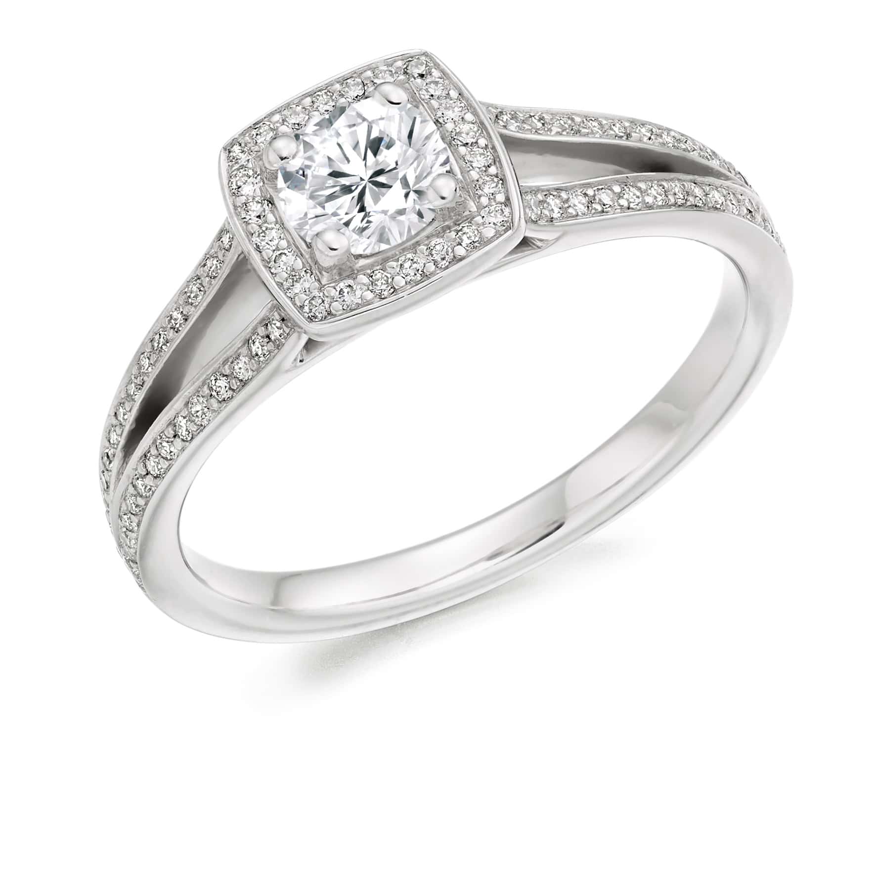 Round Brilliant Halo 0.33ct Diamond Engagement Ring with Diamond Set Shoulders