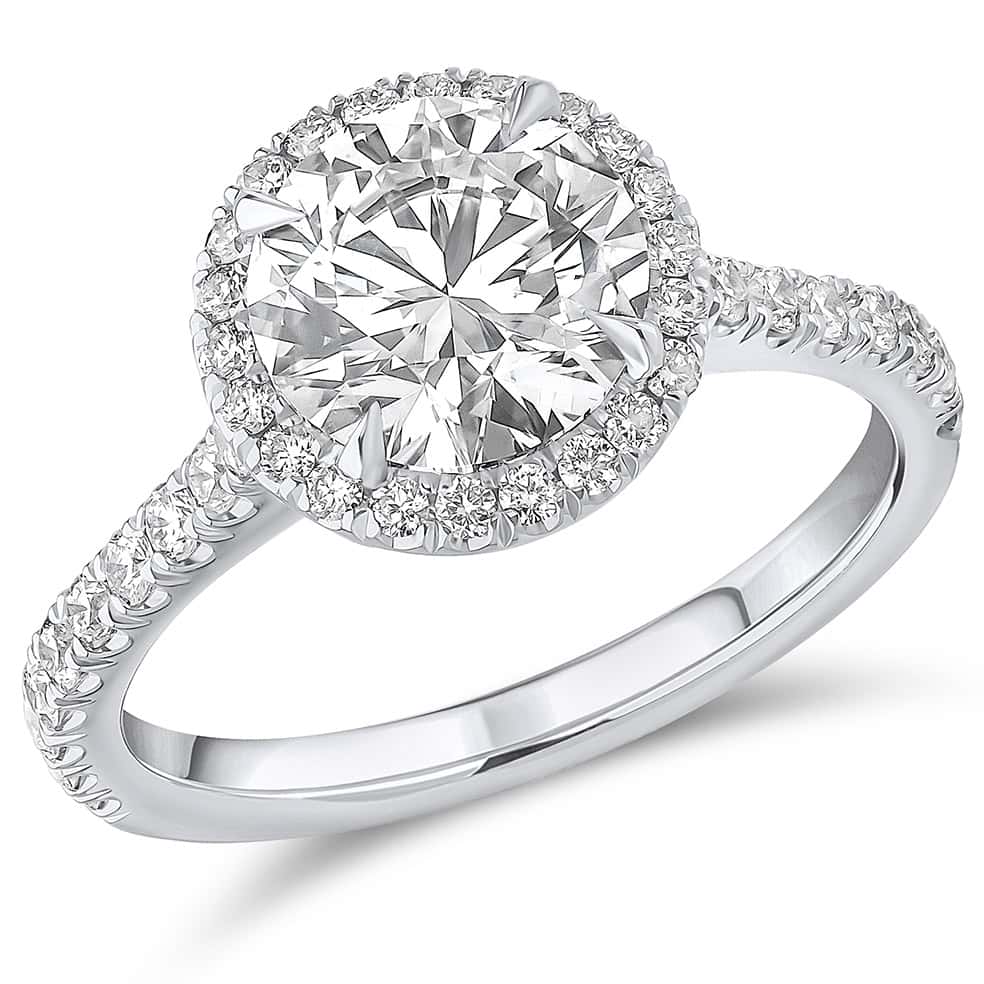Round Brilliant Oyster Deluxe 2ct Diamond Engagement Ring with Diamond Set Shoulders