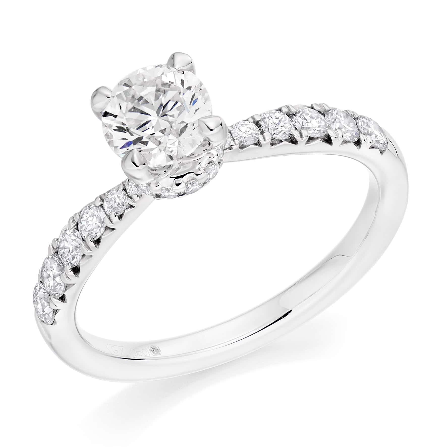 Round Brilliant Solitaire 0.75ct Diamond Engagement Ring with Diamond Set Shoulders