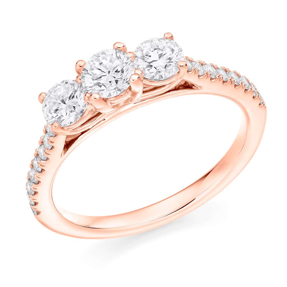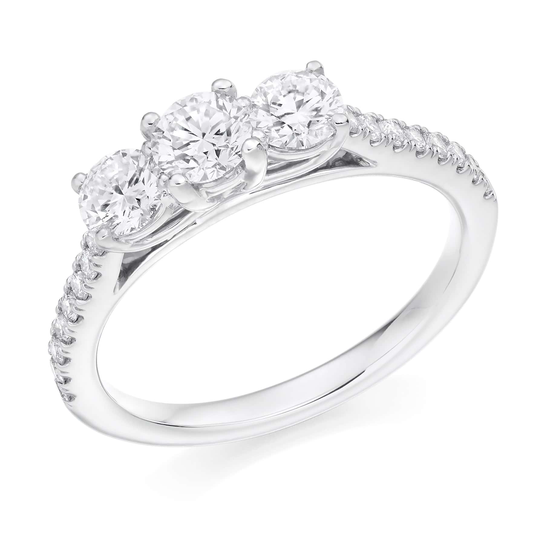 Trilogy Engagement Ring with Round Brilliant cut Diamonds with Diamond Set Shoulders