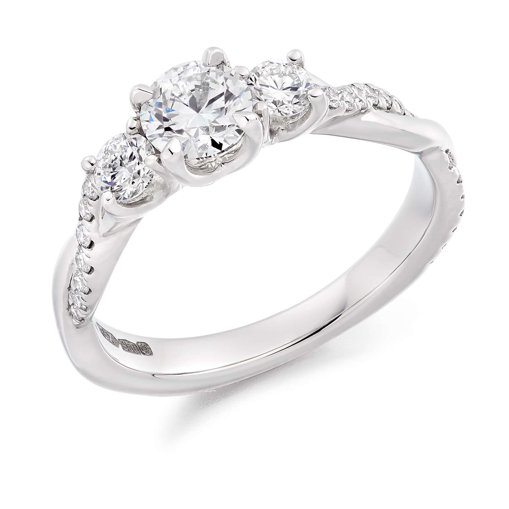 Round Brilliant Trilogy Diamond Engagement Ring with Diamond Set Shoulders