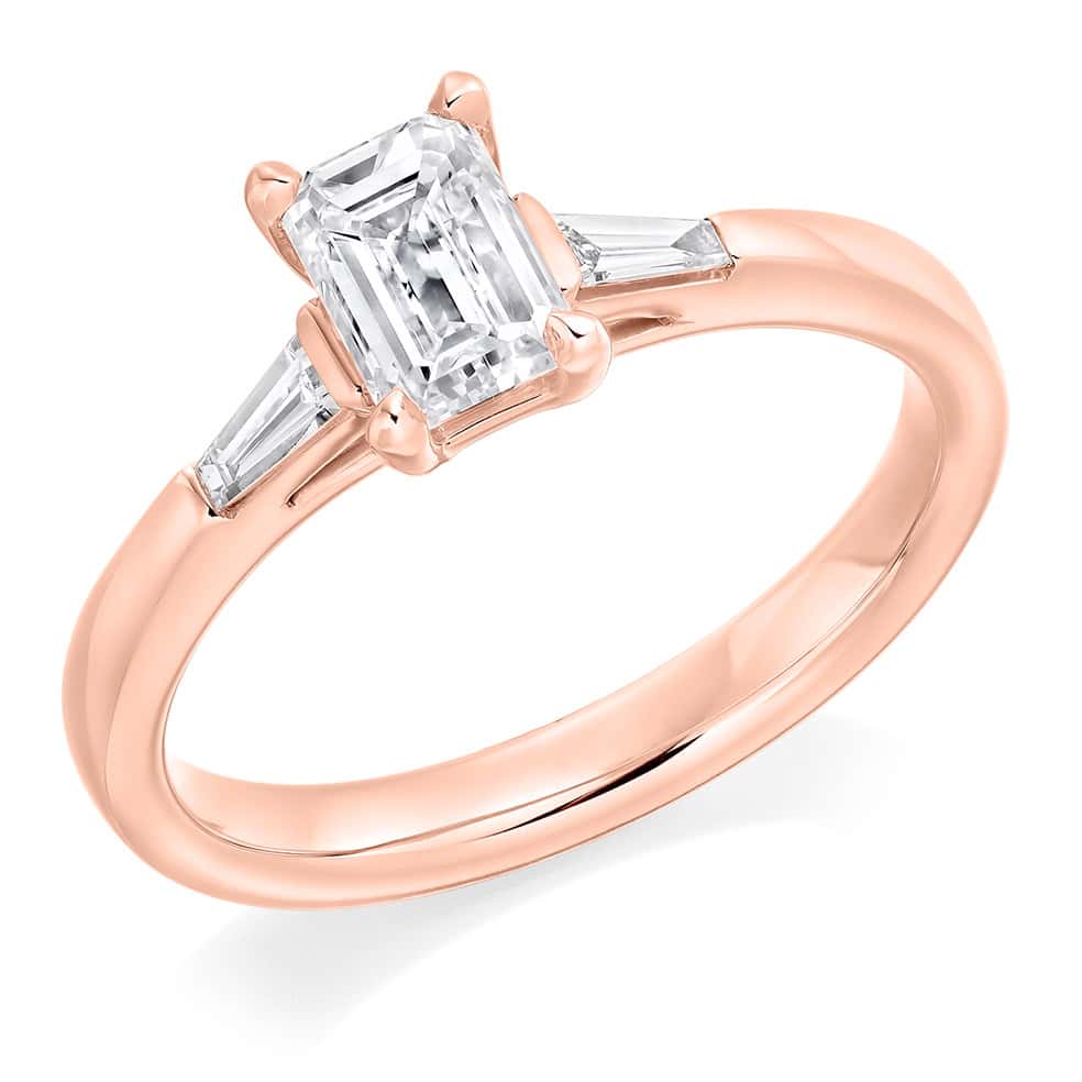 Emerald Cut Trilogy Diamond Engagement Ring
