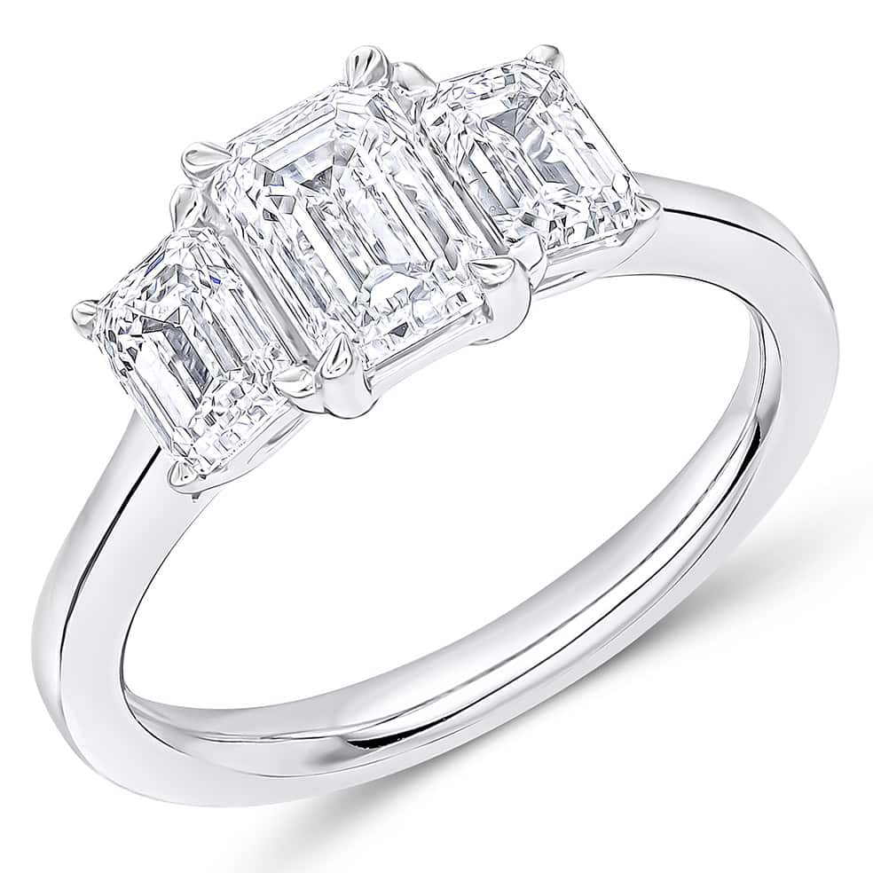 Emerald Cut Trilogy Diamond Engagement Ring
