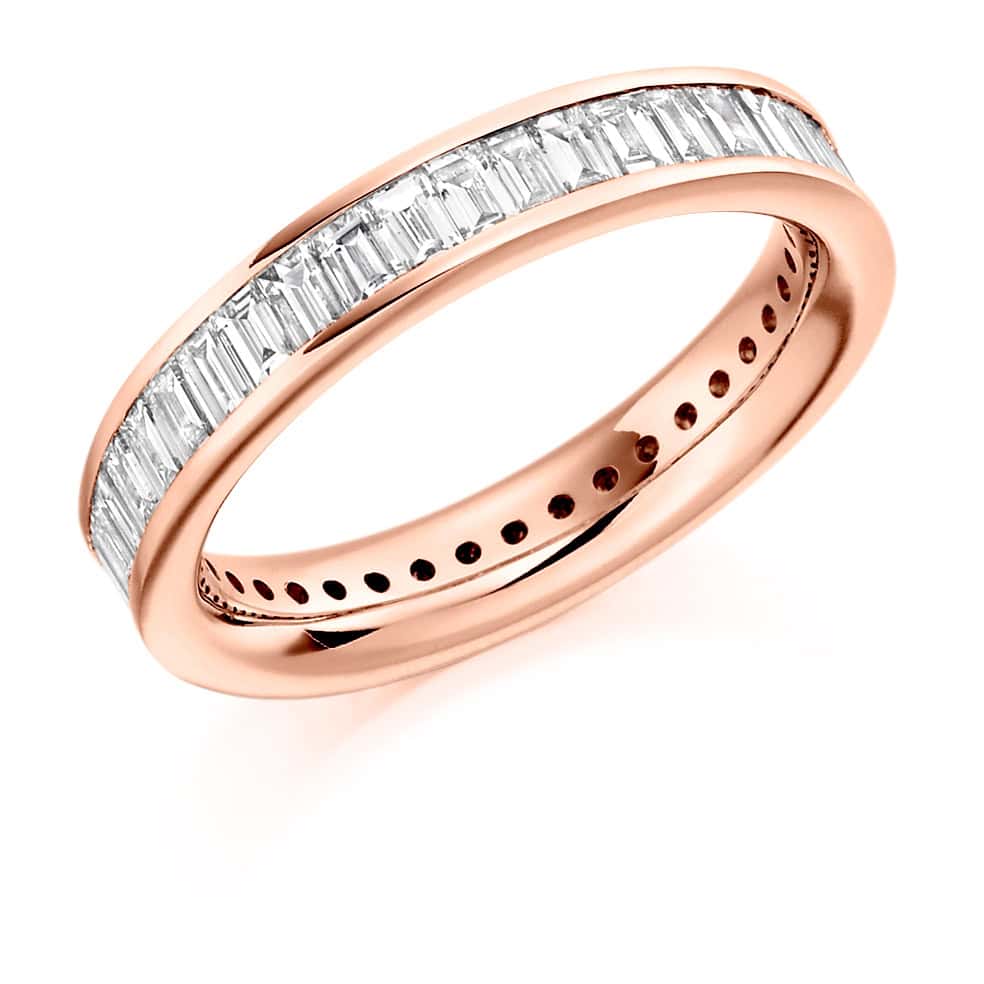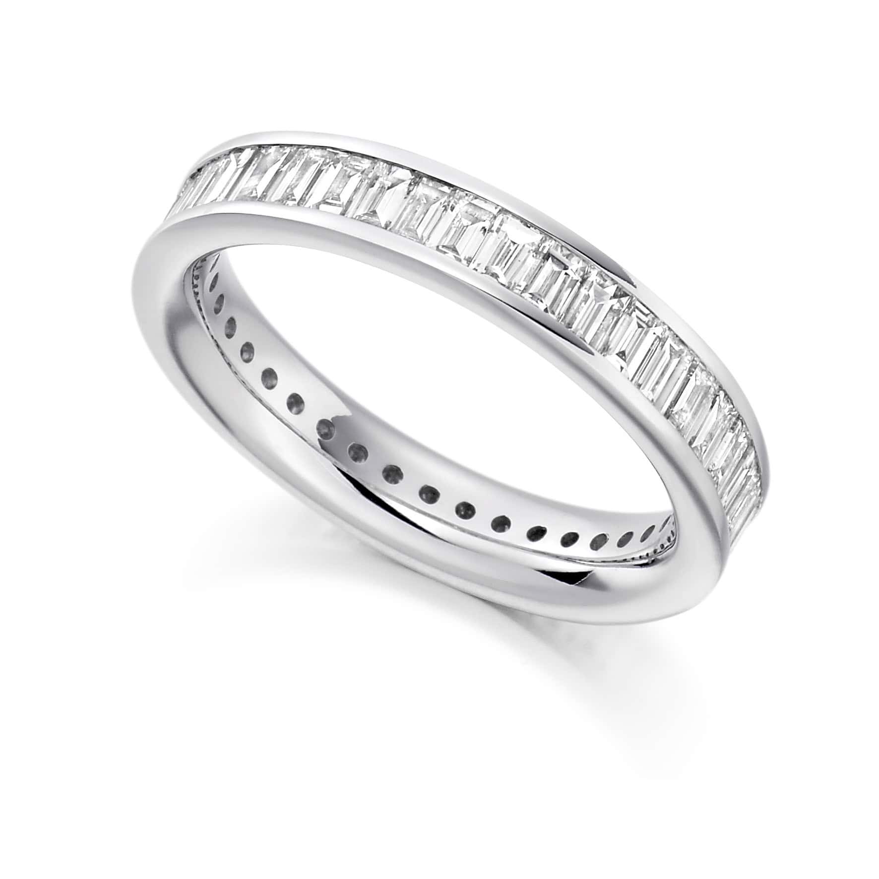 Baguette Cut Diamond Eternity Style Ring, Channel Set with 100% Diamond Coverage, 3.9mm 2 Carat Total Diamond Weight