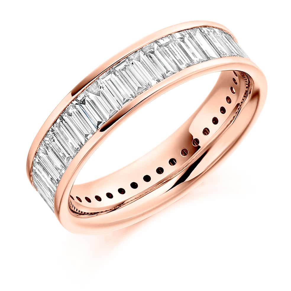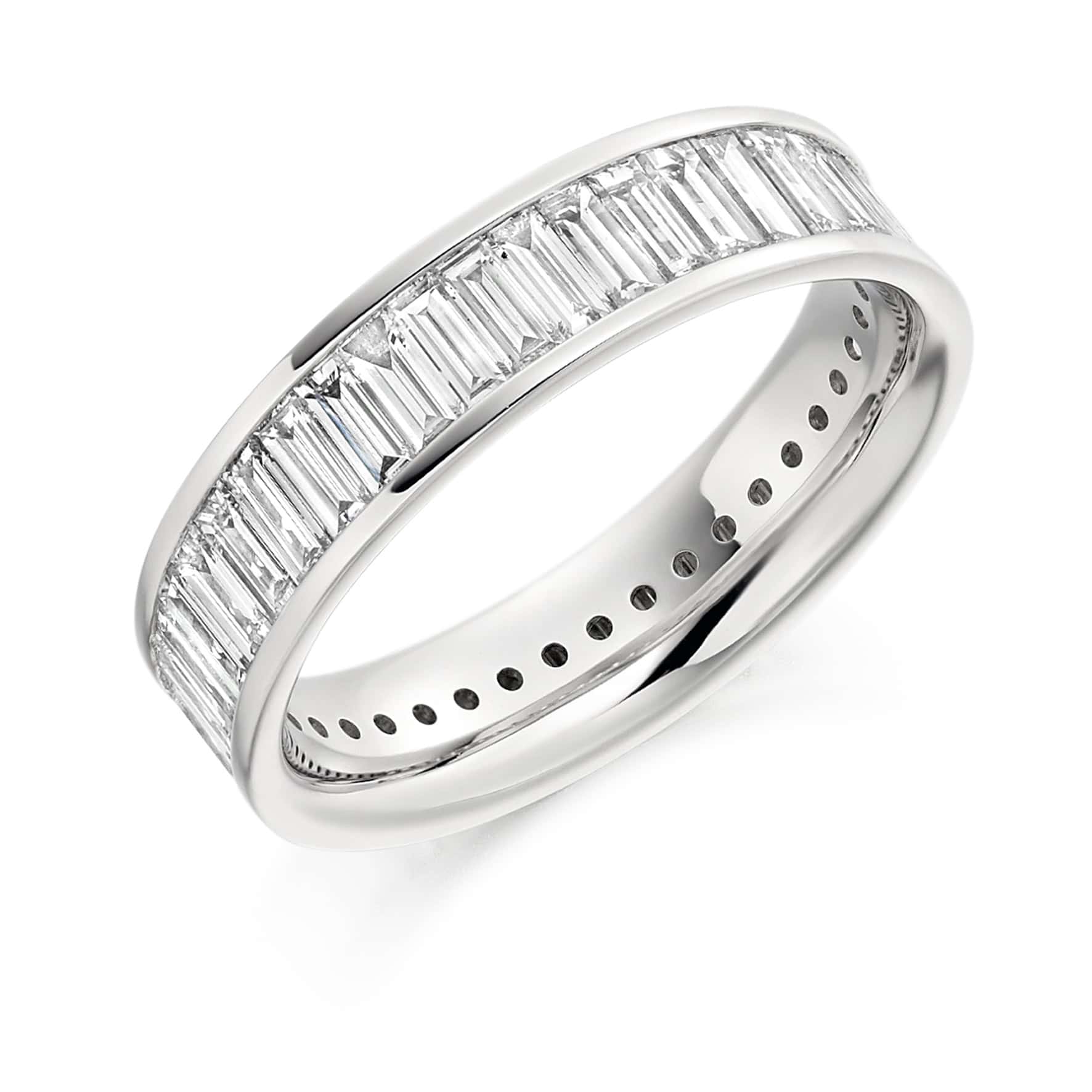Baguette Cut Diamond Eternity Style Ring, Channel Set with 100% Diamond Coverage, 4.6mm 2.5 Carat Total Diamond Weight