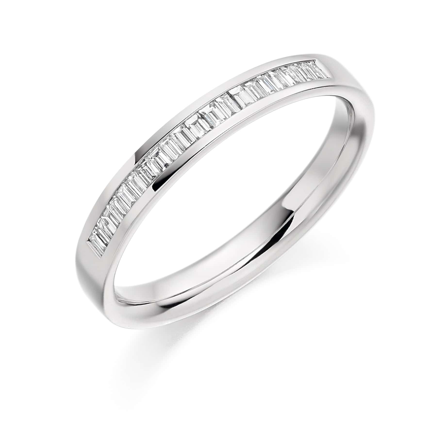 Baguette Cut Diamond Eternity Style Ring, Channel Set with 33% Diamond Coverage, 2.9mm 0.2 Carat Total Diamond Weight