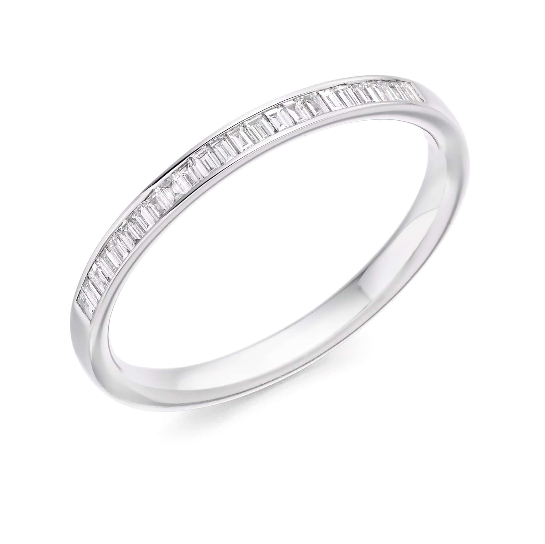 Baguette Cut Diamond Eternity Style Ring, Channel Set with 35% Diamond Coverage, 2mm 0.2 Carat Total Diamond Weight