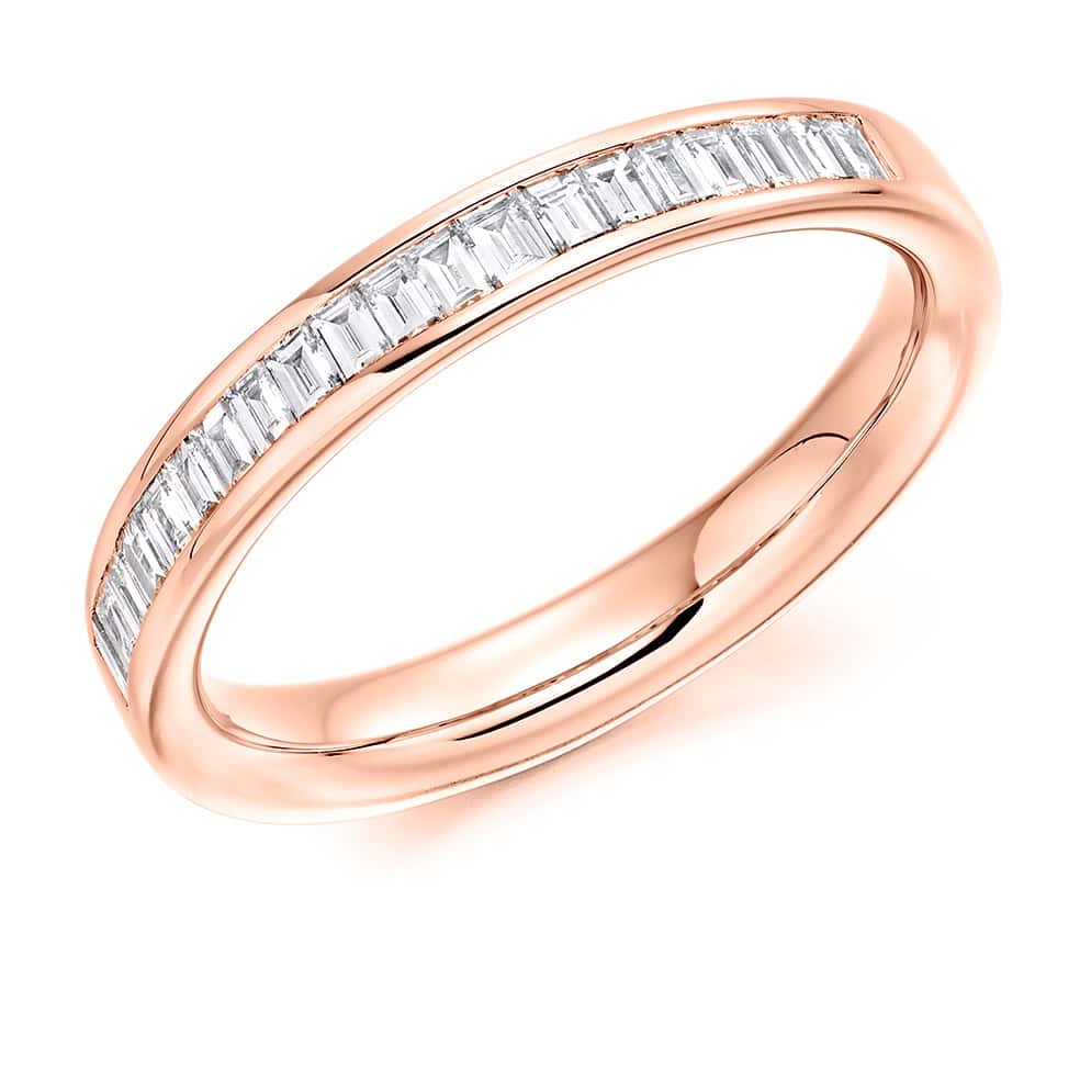 Baguette Cut Diamond Eternity Style Ring, Channel Set with 40% Diamond Coverage, 3mm 0.4 Carat Total Diamond Weight