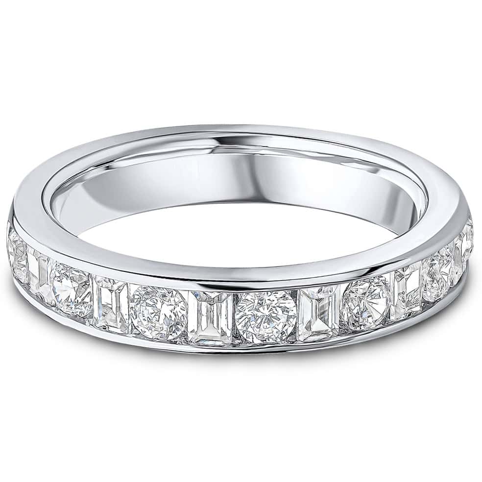 Channel Set, Round Brilliant, Baguette Cut Diamond Eternity Ring with 30% Diamond Coverage, 3.9 mm Width
