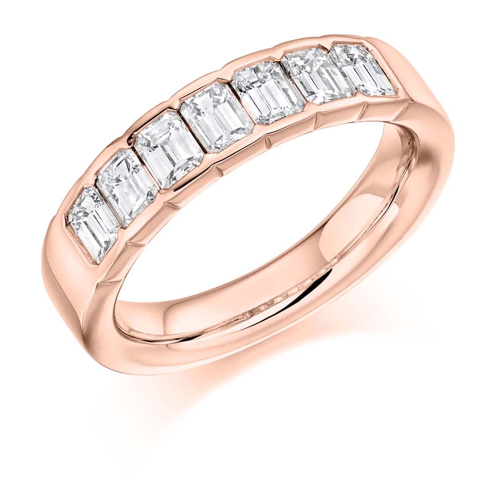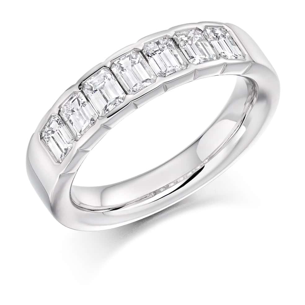 Emerald Cut Diamond Eternity Style Ring, Rubover Set with 33% Diamond Coverage, 5mm 1.5 Carat Total Diamond Weight