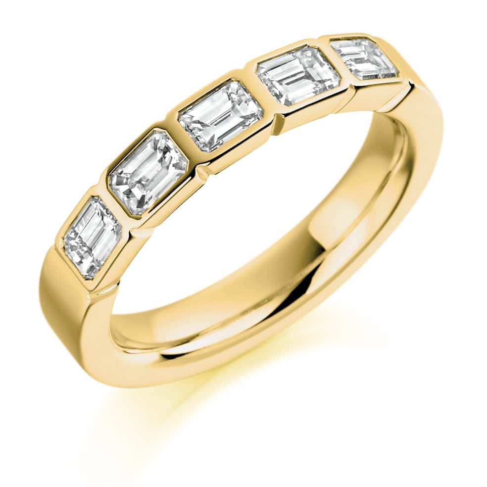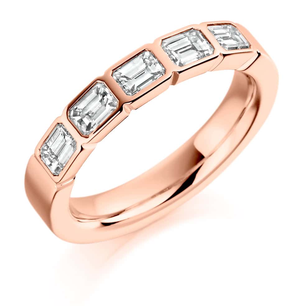 Emerald Cut Diamond Eternity Style Ring, Rubover Set with 35% Diamond Coverage, 3.7mm 1 Carat Total Diamond Weight