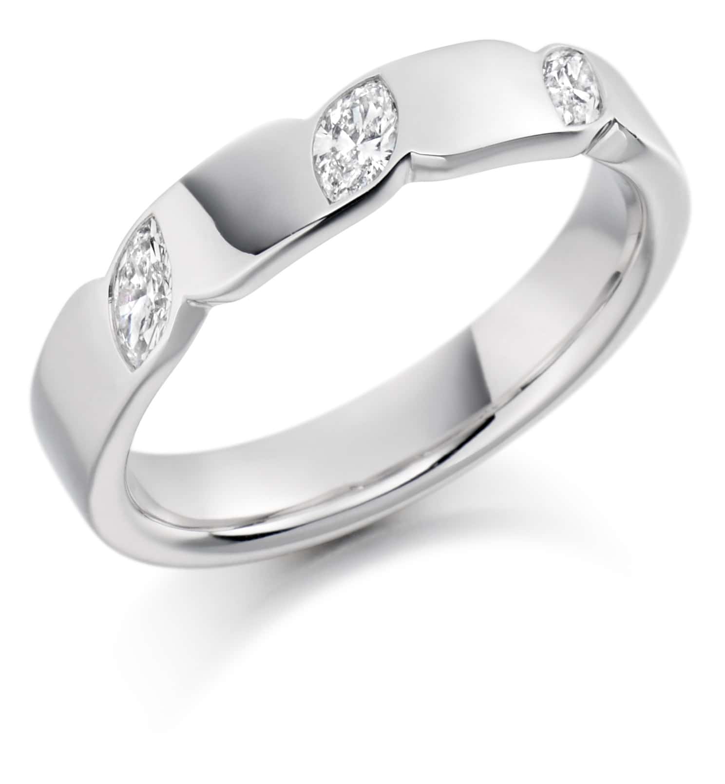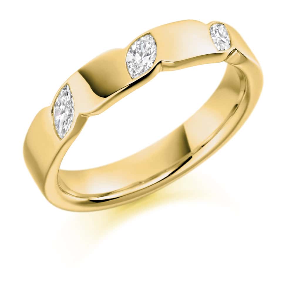 Marquise Cut Diamond Eternity Style Ring, Rubover Set with 25% Diamond Coverage, 4mm 0.3 Carat Total Diamond Weight