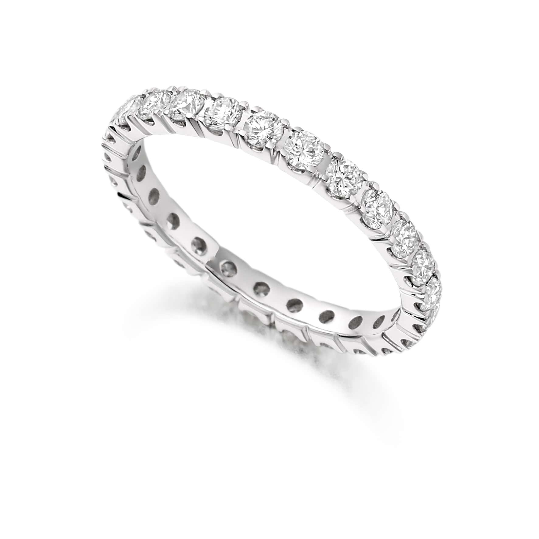 Round Brilliant Diamond Eternity Style Ring, Claw Set with 100% Diamond Coverage, 2.3mm 1 Carat Total Diamond Weight