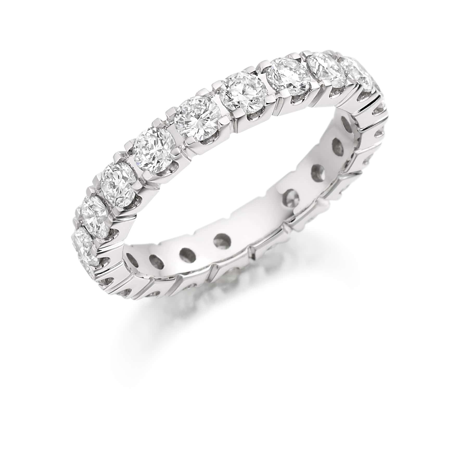 Round Brilliant Diamond Eternity Style Ring, Claw Set with 100% Diamond Coverage, 3.2mm 2 Carat Total Diamond Weight