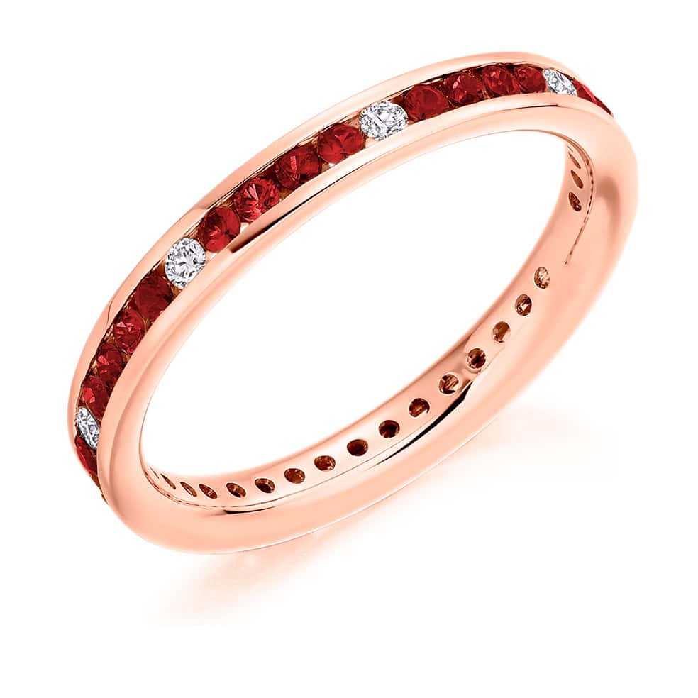 Ruby and Diamond Round Brilliant Channel Set Full Eternity Ring with 100% Diamond Coverage