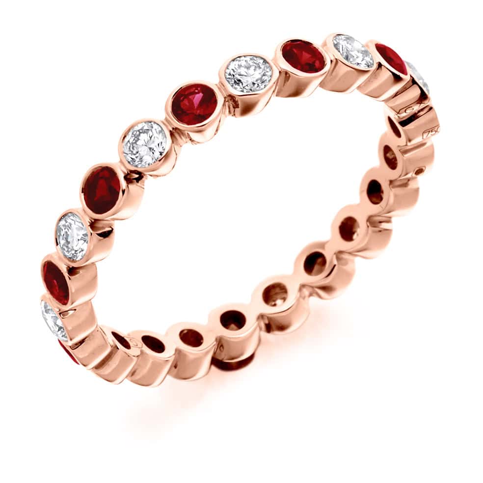 Ruby and Diamond Round Brilliant Rubover Set Full Eternity Ring with 100% Diamond Coverage
