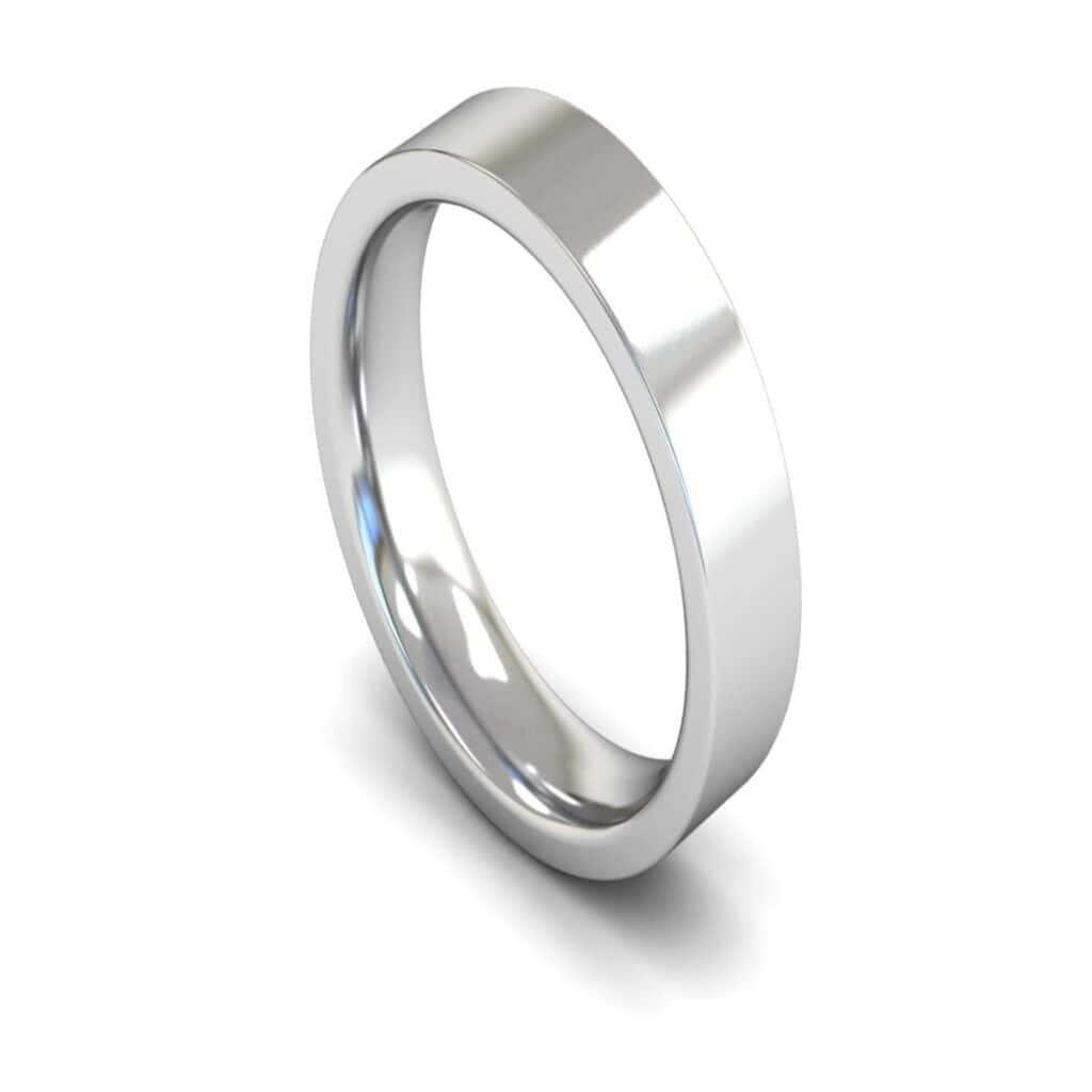Heavy Weight Edged Flat Court Profile 5mm wide 18ct White Gold Plain Wedding Ring
