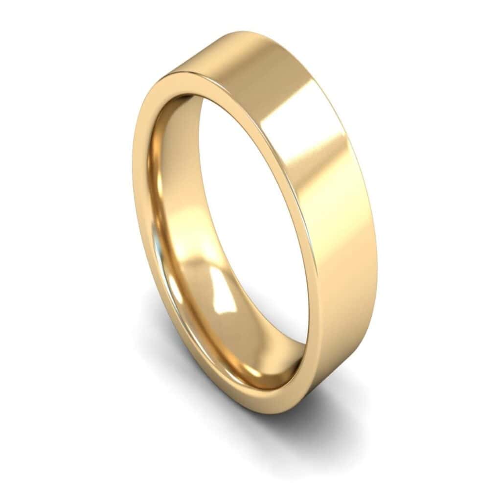 Heavy Weight Edged Flat Court Profile 7mm wide 14ct Yellow Gold Plain Wedding Ring