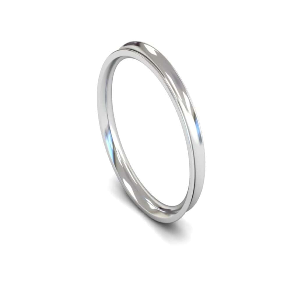 Light Weight Concave Profile 2.5mm wide 14ct White Gold Plain Wedding Ring