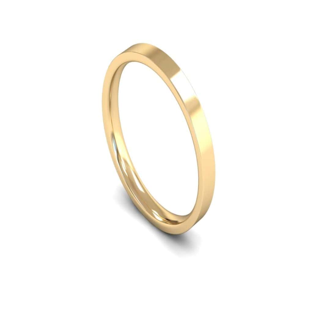 Light Weight Edged Flat Court Profile 2.5mm wide 14ct Yellow Gold Plain Wedding Ring