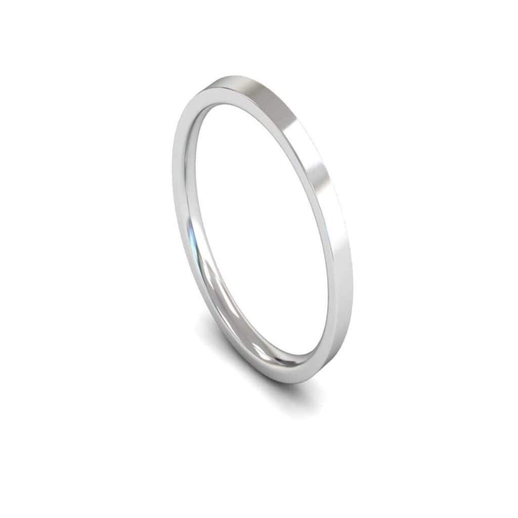 Light Weight Edged Flat Court Profile 2mm wide 14ct White Gold Plain Wedding Ring