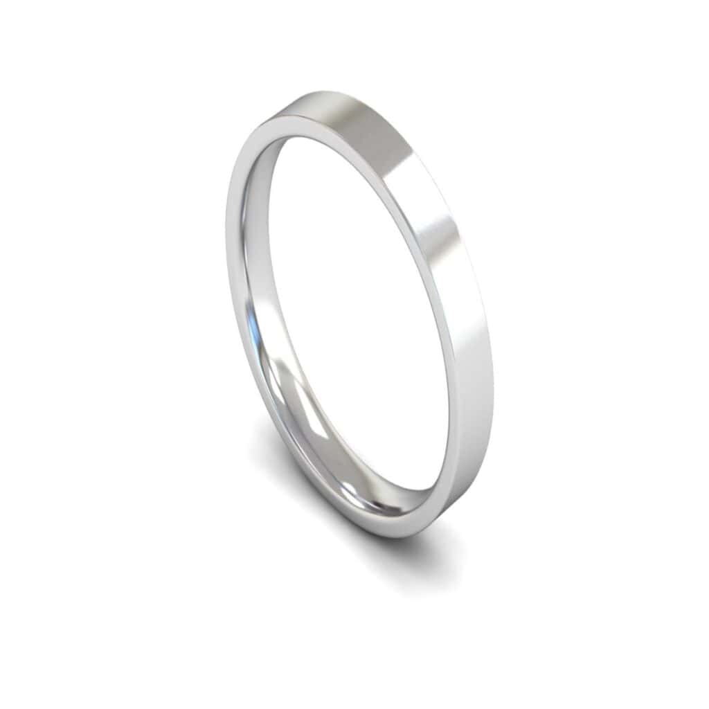 Light Weight Edged Flat Court Profile 3mm wide 14ct White Gold Plain Wedding Ring