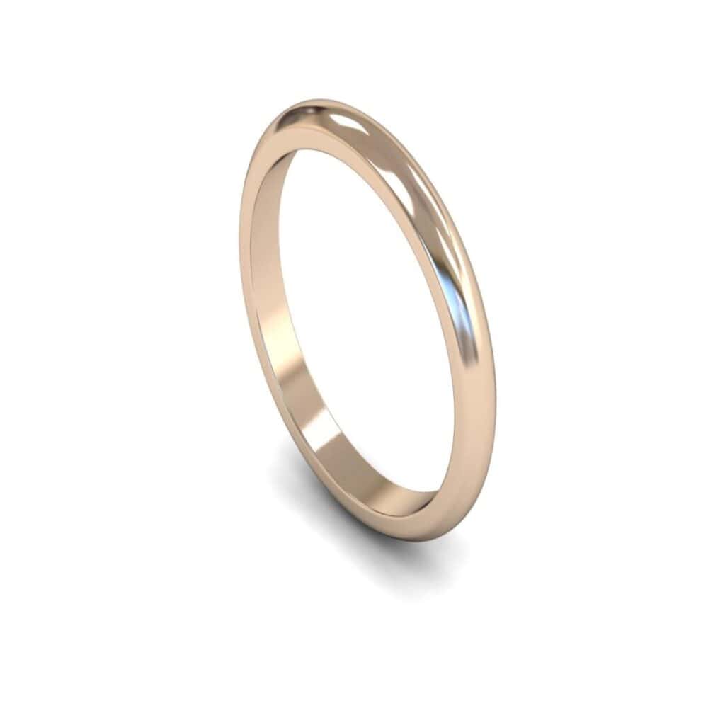 Medium Weight D-shape Profile 2.5mm wide 14ct Rose Gold Plain Wedding Ring