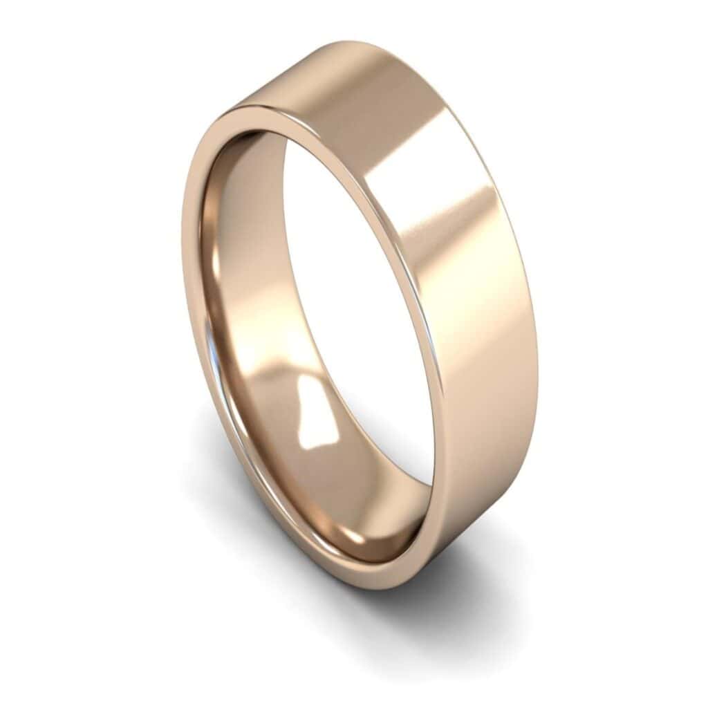 Medium Weight Edged Flat Court Profile 10mm wide 14ct Rose Gold Plain Wedding Ring