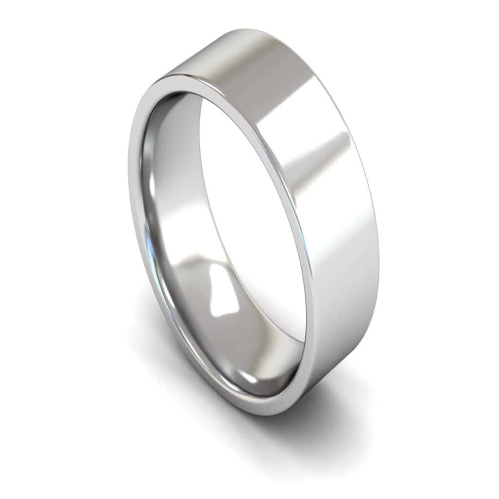 Medium Weight Edged Flat Court Profile 10mm wide 14ct White Gold Plain Wedding Ring