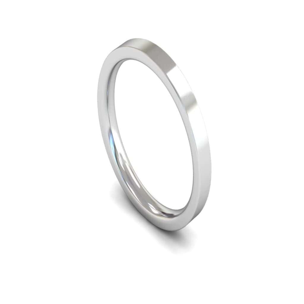 Medium Weight Edged Flat Court Profile 2.5mm wide 14ct White Gold Plain Wedding Ring