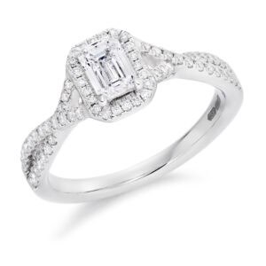 Emerald Cut Halo 0.5ct Diamond Engagement Ring with Diamond Set Shoulders