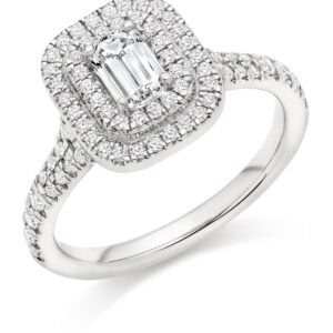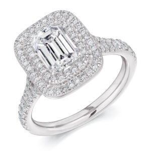 Emerald Cut Halo 1.5ct Diamond Engagement Ring with Diamond Set Shoulders