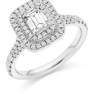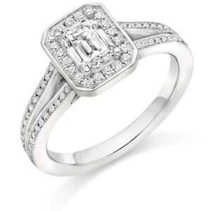 Emerald Cut Halo 0.75ct Diamond Engagement Ring with Diamond Set Shoulders