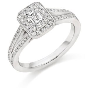 Emerald Cut Halo 0.33ct Diamond Engagement Ring with Diamond Set Shoulders